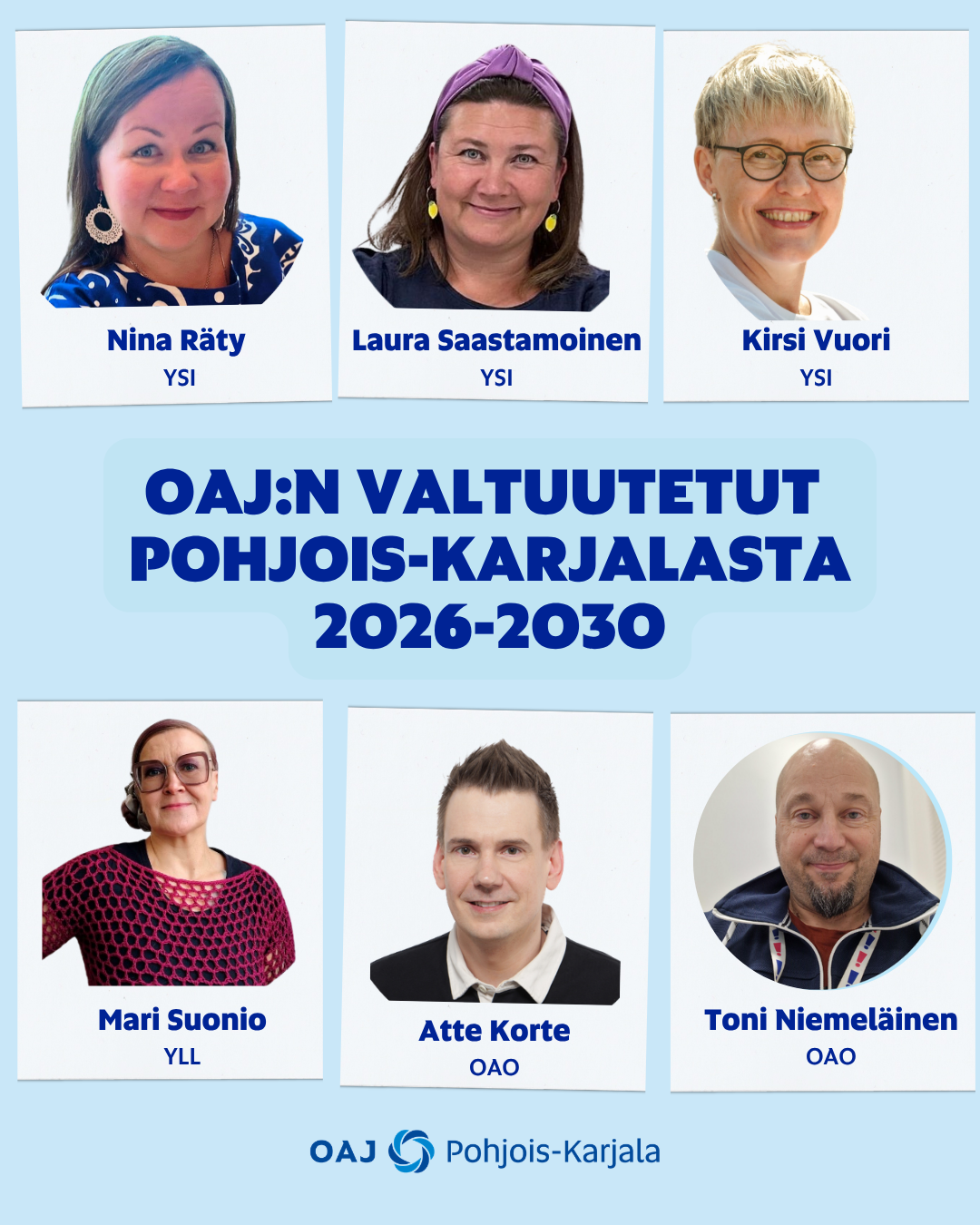 OAJ:n valtuustossa vaikuttavat alkavalla kaudella seuraavat pohjoiskarjalaiset opettajat: